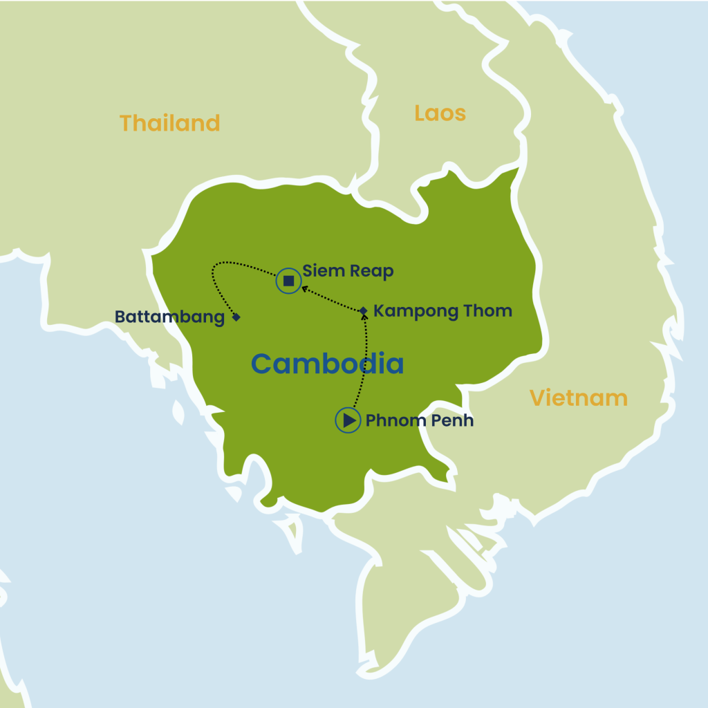 It’s time to say goodbye, but think of all the wonderful stories you will take home. A transfer will take you to the airport for your onward travel. As you depart Cambodia, take with you unforgettable memories of ancient temples, vibrant cities, warm local hospitality, and the rich tapestry of culture and history that made this journey truly special.