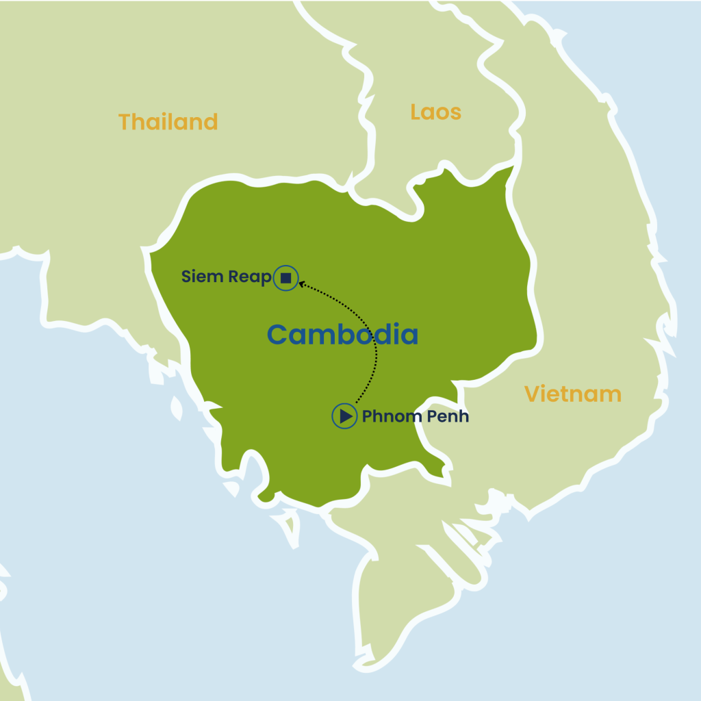 Experience the best of Cambodia in this five-day journey through Phnom Penh and Siem Reap. Start with a Cyclo ride through Phnom Penh, visiting the Royal Palace, Silver Pagoda, and the National Museum. Explore the chilling history of the Khmer Rouge at the Toul Sleng Museum. Travel overland to Siem Reap, with stops at the spider market in Skun and the floating village of Kampong Phluk. Witness the stunning sunrise over Angkor Wat, then explore the temples of Angkor Thom, Bayon, and Ta Prohm, famous for its tree-entangled ruins. End your adventure with a relaxing departure from Siem Reap.