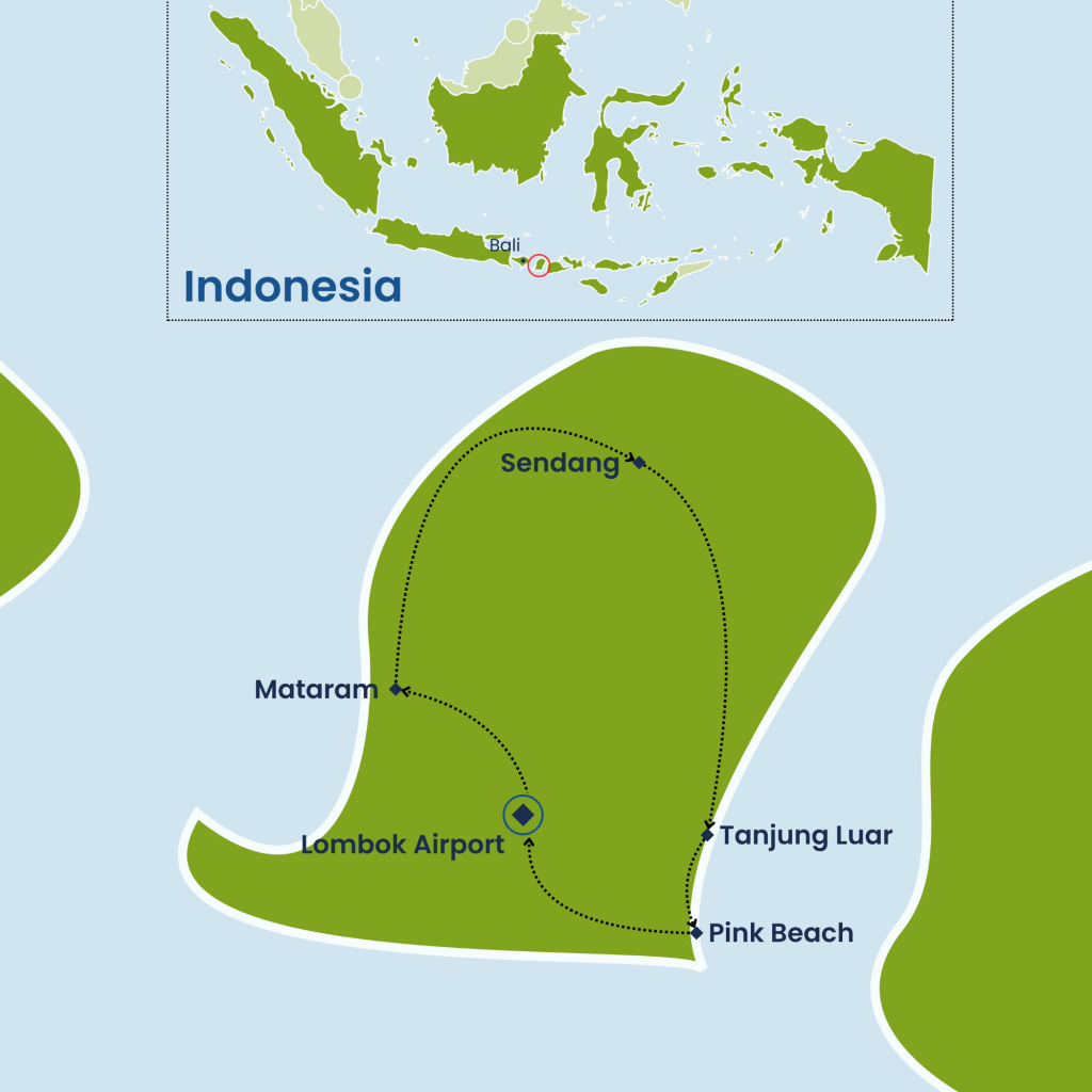 Visiti Tanjung Luar: A Fusion of Natural Beauty and Local Culture Situated on the eastern coast of Lombok, Tanjung Luar Port offers visitors a unique glimpse into the island's maritime culture. Gili Pasir: Discover the Hidden Gem of East Lombok: Gili Pasir (Sandy Island) Gili Pasir, a mesmerizingly tiny island in East Lombok, emerges as a stunning secret of nature, revealed only during the low tide. Gili Petelu: Gili Petelu is an unspoiled paradise waiting to be discovered. This trio of small, pristine islands offers an idyllic escape for those seeking tranquility away from the crowd. Gili Gambir: Discover the Magic of Gili Gambir Gili Gambir, with its pristine shores and crystal-clear waters, is the epitome of a tropical paradise. Pantai Pink: Pink Beach stands as a breathtaking spectacle of nature's artistry. Officially named Tangsi Beach, it's one of the few beaches in the world where the sand glows in a soft, mesmerizing pink hue, a result of the coral fragments mixing with white sand. Lunch will be served here. Pantai Segui: Segui Beach is a pristine paradise that remains one of the island's best-kept secrets. With its untouched natural beauty, crystal-clear turquoise waters, and serene atmosphere, Segui Beach offers a tranquil escape from the hustle and bustle of everyday life. From here sail back to the port and drive back to the hotel.