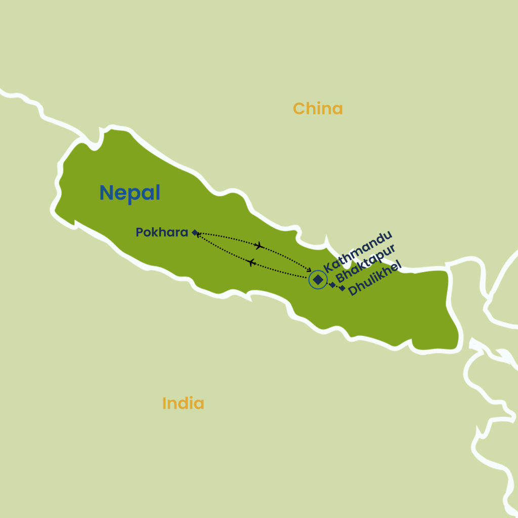 After breakfast, transfer to the airport for your onward flight or journey home. Reflect on the memories created during this remarkable trip, from the serene Himalayan landscapes and vibrant lakeside Pokhara to the spiritual and cultural treasures of Kathmandu. The stunning vistas, historic sites, and local interactions you have experienced will leave a lasting impression, making this Nepal adventure truly unforgettable.