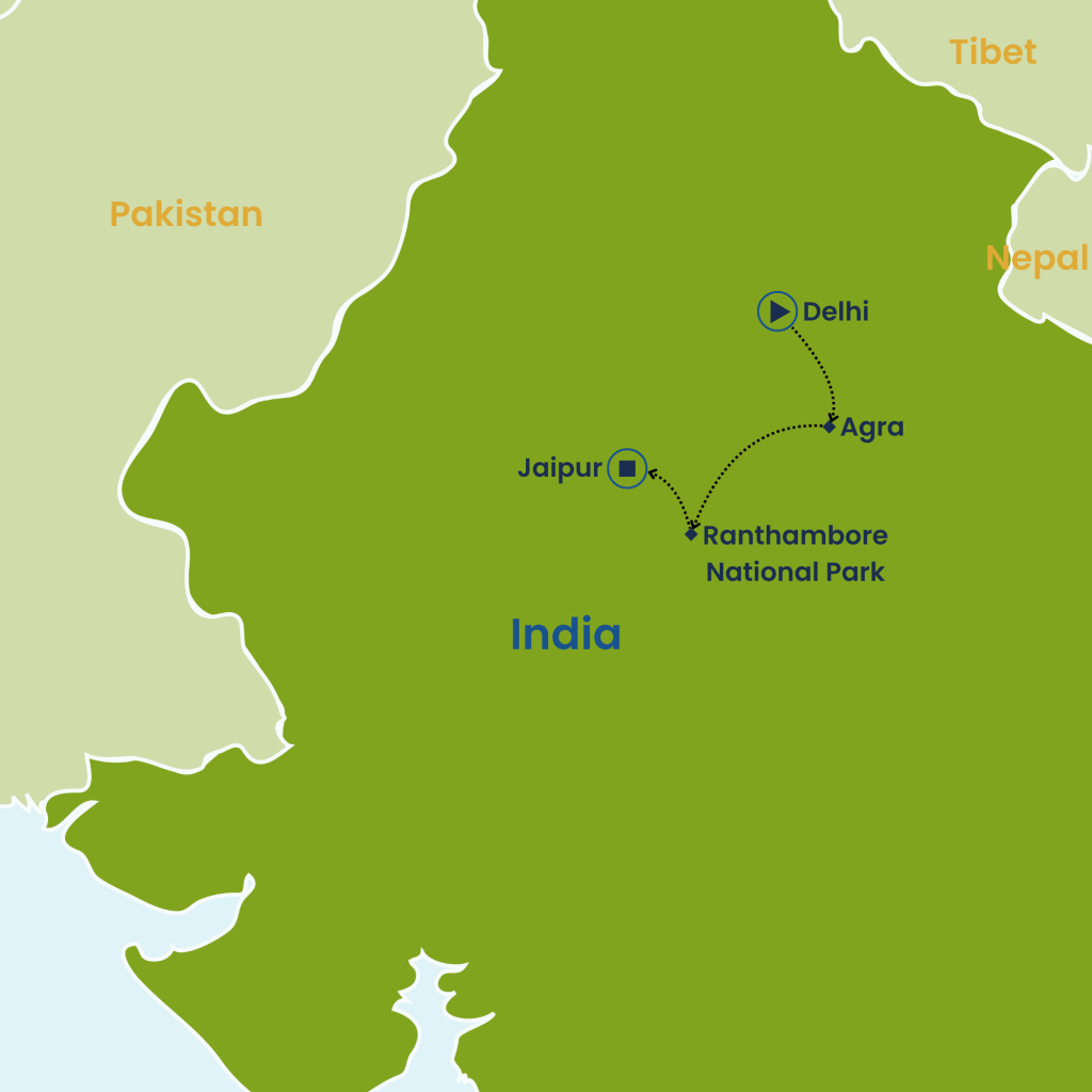 After breakfast, transfer to the airport for your onward journey. As you depart, reflect on the unforgettable moments of this adventure — from the serene sunrise over the Taj Mahal to the thrilling safaris of Ranthambore and the vibrant colors of Jaipur’s bazaars. The memories of India’s rich culture, majestic forts, and warm hospitality will stay with you long after you’ve returned home.